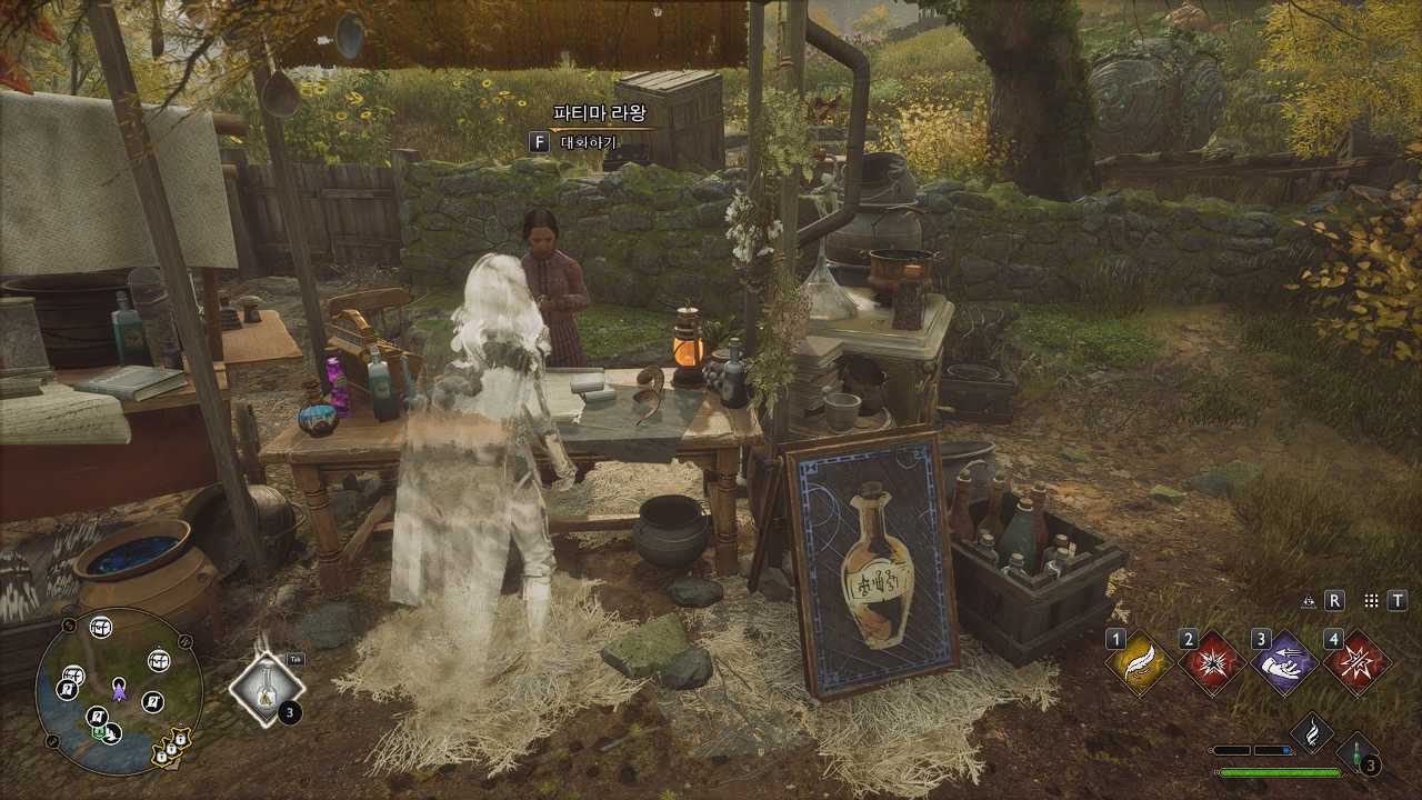 투명 마법약은 TAB키를 누르고 투명 마법약을 선택하고 한번더 TAB키를 누르면 마실 수 있다. 투명 마법약을 마시고 나서 다시 파티마 라왕에게 말을 걸고 투명 마법약 3개를 전달하자.