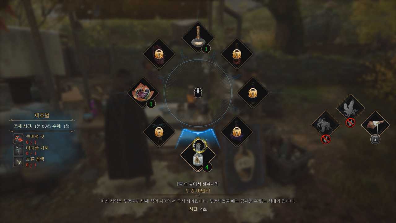 투명 마법약을 마시기 / 파티마에게 투명 마법약 3개를 주기