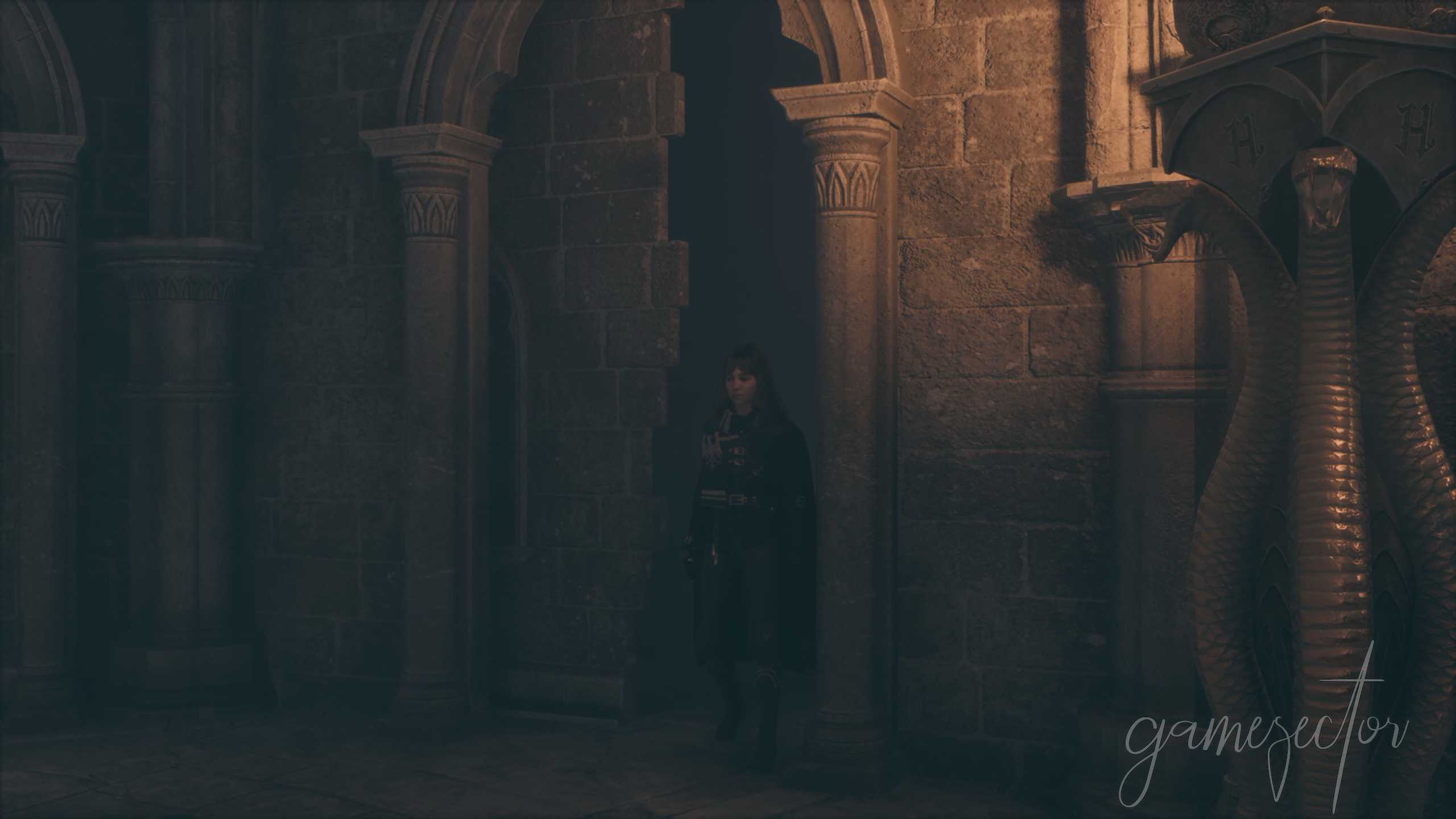 열린 문으로 들어가면 다음 방에서 갇히게 되는데 반쯤 잘린 문으로 들어가보면 인센디오로 불을 붙이고 옆에 있는 슬리데린 자물쇠와 상호작용하여 뱀 문양으로 다이얼을 돌리고 잠금을 해제해야 한다.