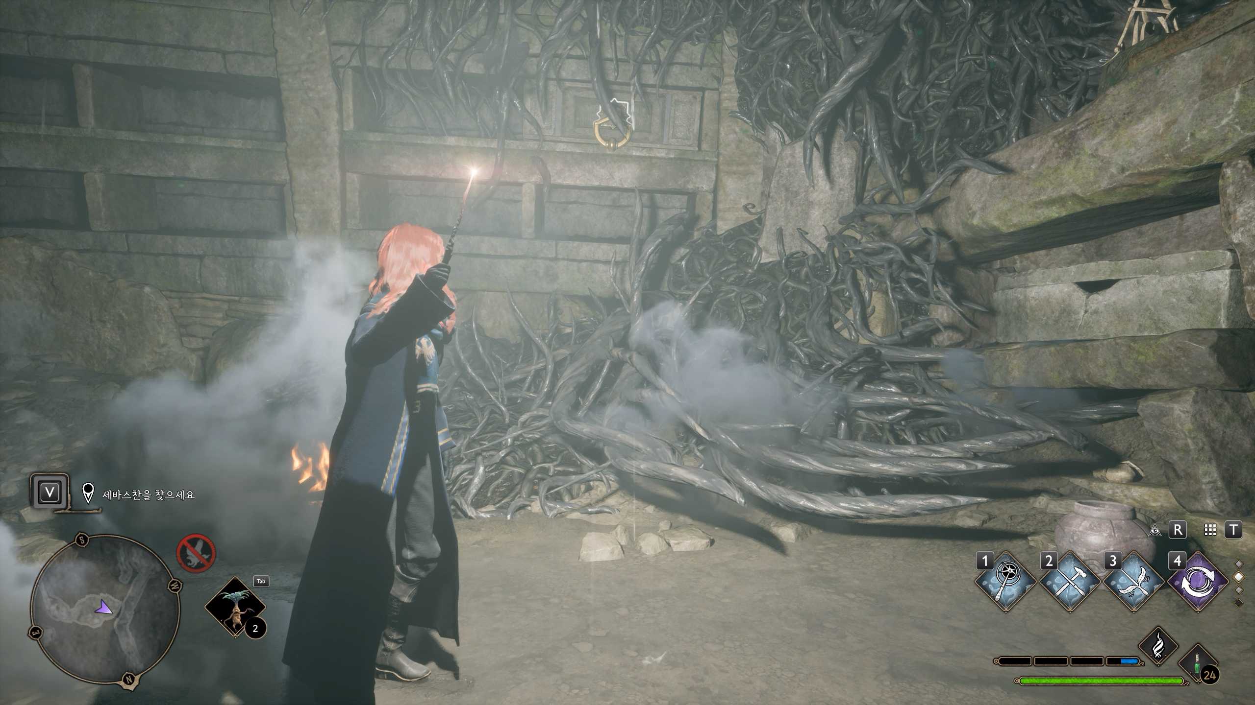 바리케이드가 열리고 들어가면 세바스찬과 대화를 끝내고 세바스찬에게 임페리우스 저주 배우고 나서 거미들을 퇴치 후 또 다른 바리케이드 통과해야 한다.