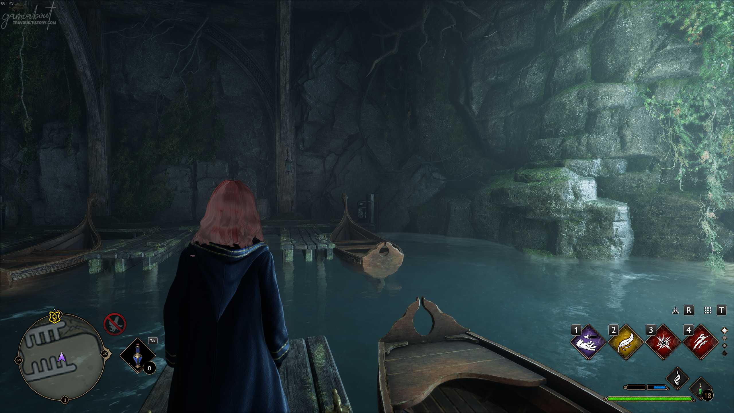 선착장 플루 불꽃 왼쪽에 있는 문으로 들어가면 오른쪽에 있는 용의 화로를 지나면 북쪽에 나룻배 한 척이 있다. 나룻 배 앞에서 레벨리오 주문을 사용하면 검은 호수 필드 가이드 페이지를 찾을 수 있다.