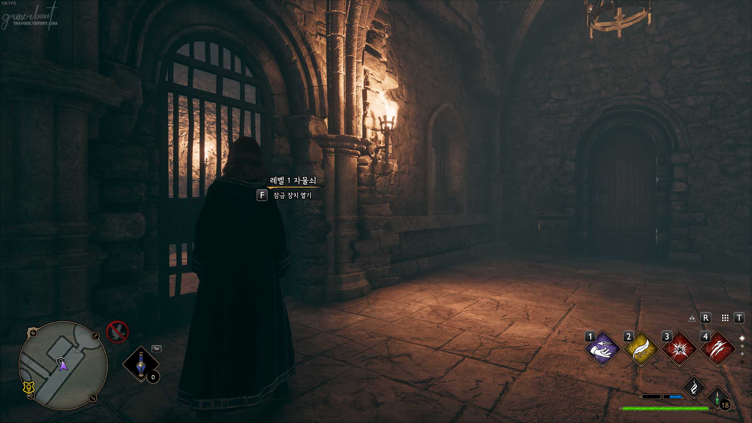 남쪽 통로를 따라가면 끝에 철창문이 열리고 동쪽 벽에 있는 잠긴 문을 해제하고 들어가자.