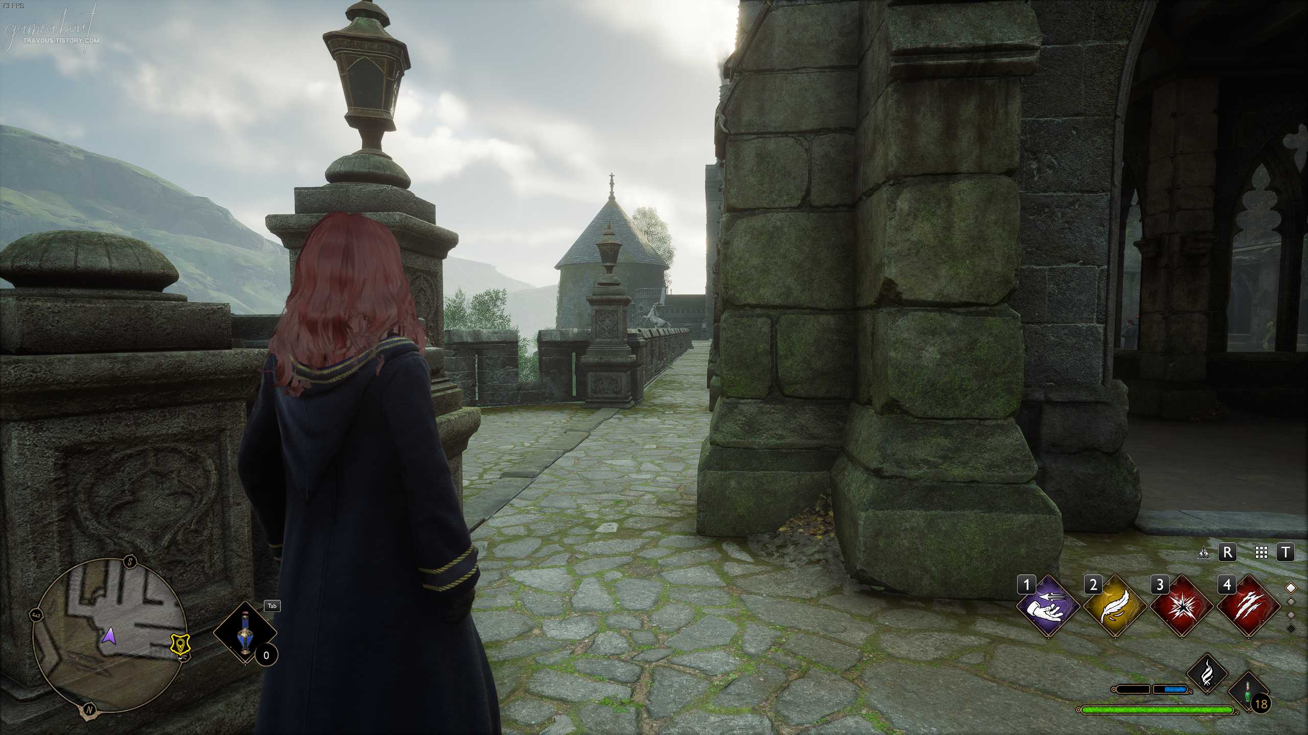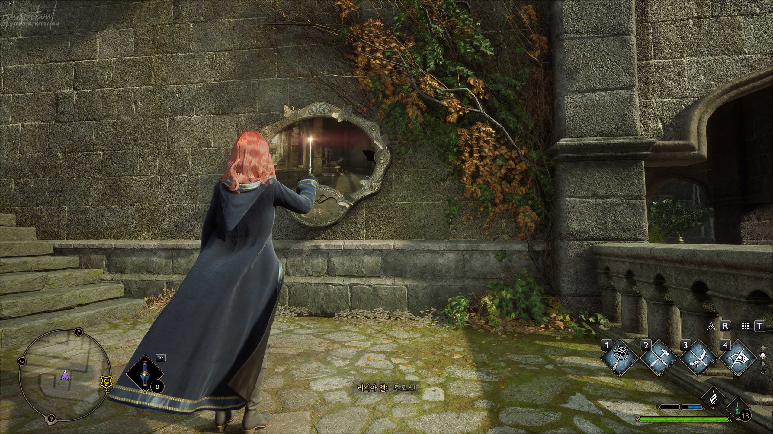 루모스 주문을 사용하고 활성화 시킨 뒤 거울나방 뒷편으로 두 개의 짧은 계단을 올라가서 동쪽 방향으로 가다보면 기둥에 있는 나방을 발견할 수 있다. 루모스 주문을 사용하고 다시 거울 나방으로 돌아오면 필드 페이지 가이드가 나타난다.