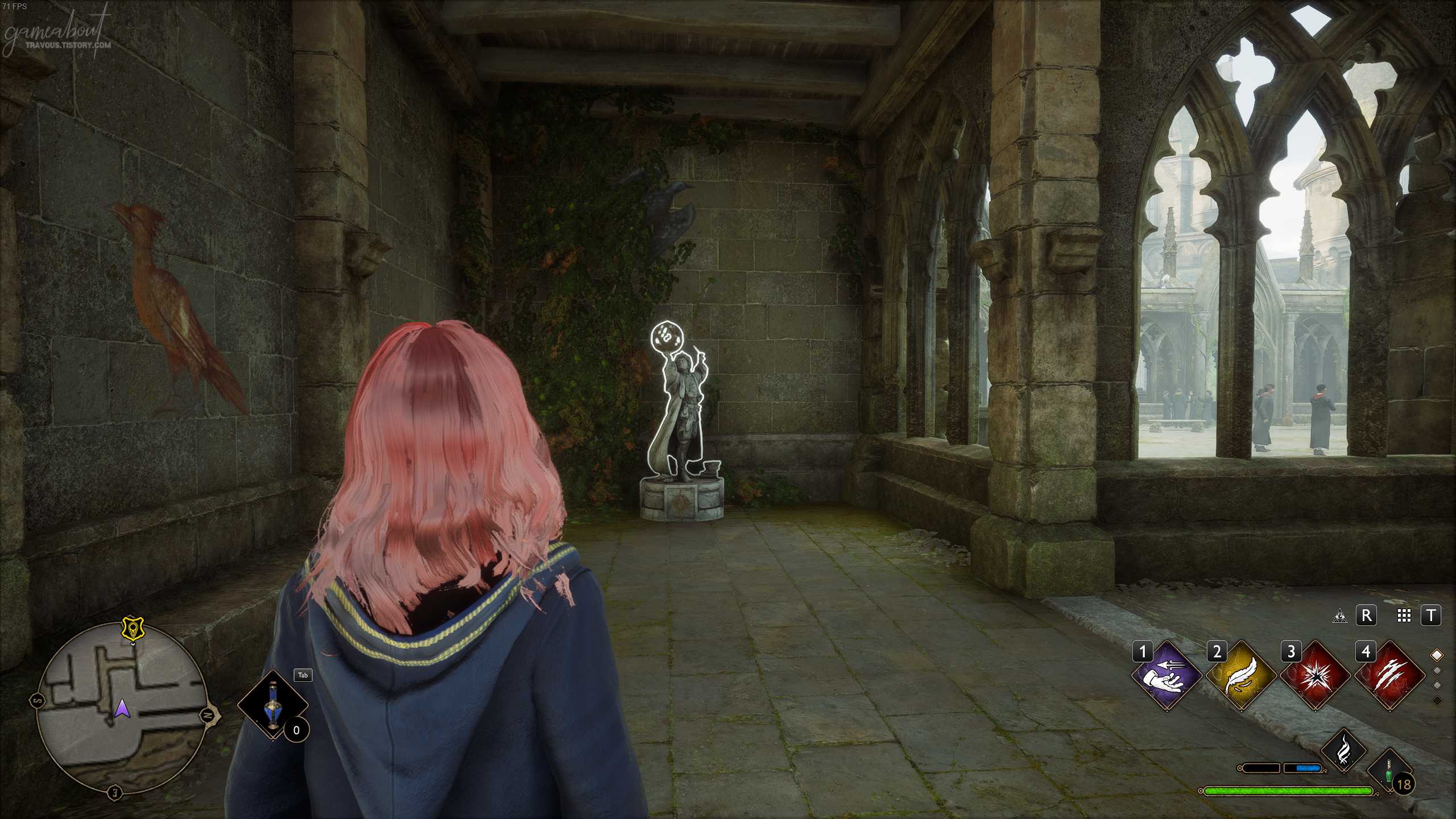 연회장 플루 불꽃으로 이동 후 서쪽에 있는 문을 통해 연회장 외부로 나가면 가고일 석상이 보일텐데 앞에서 레벨리오 주문을 사용하면 하품하는 가고일 필드 가이드 페이지를 찾을 수 있다.
