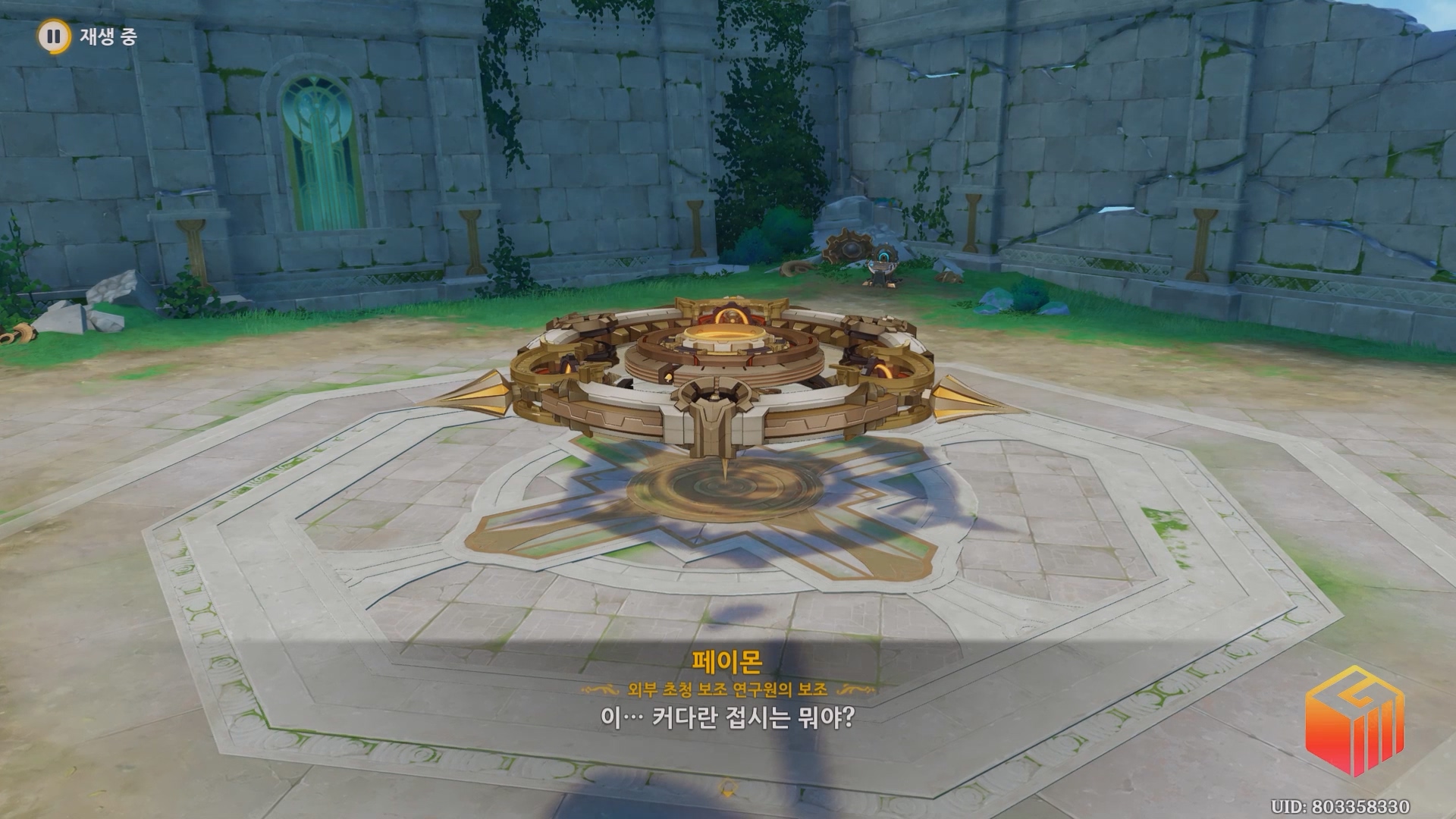 내커의 요청에 따라 커다란 접시를 촬영 중인 클로니아와 함께 폰타인 과학원으로 돌아가서 레이먼드와 대화를 끝내고 다소 화려한 기념 촬영 후 다시 폰타인 과학원 유적으로 돌아가자.
