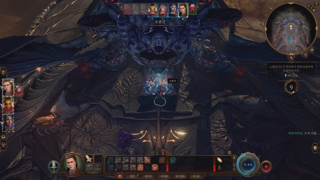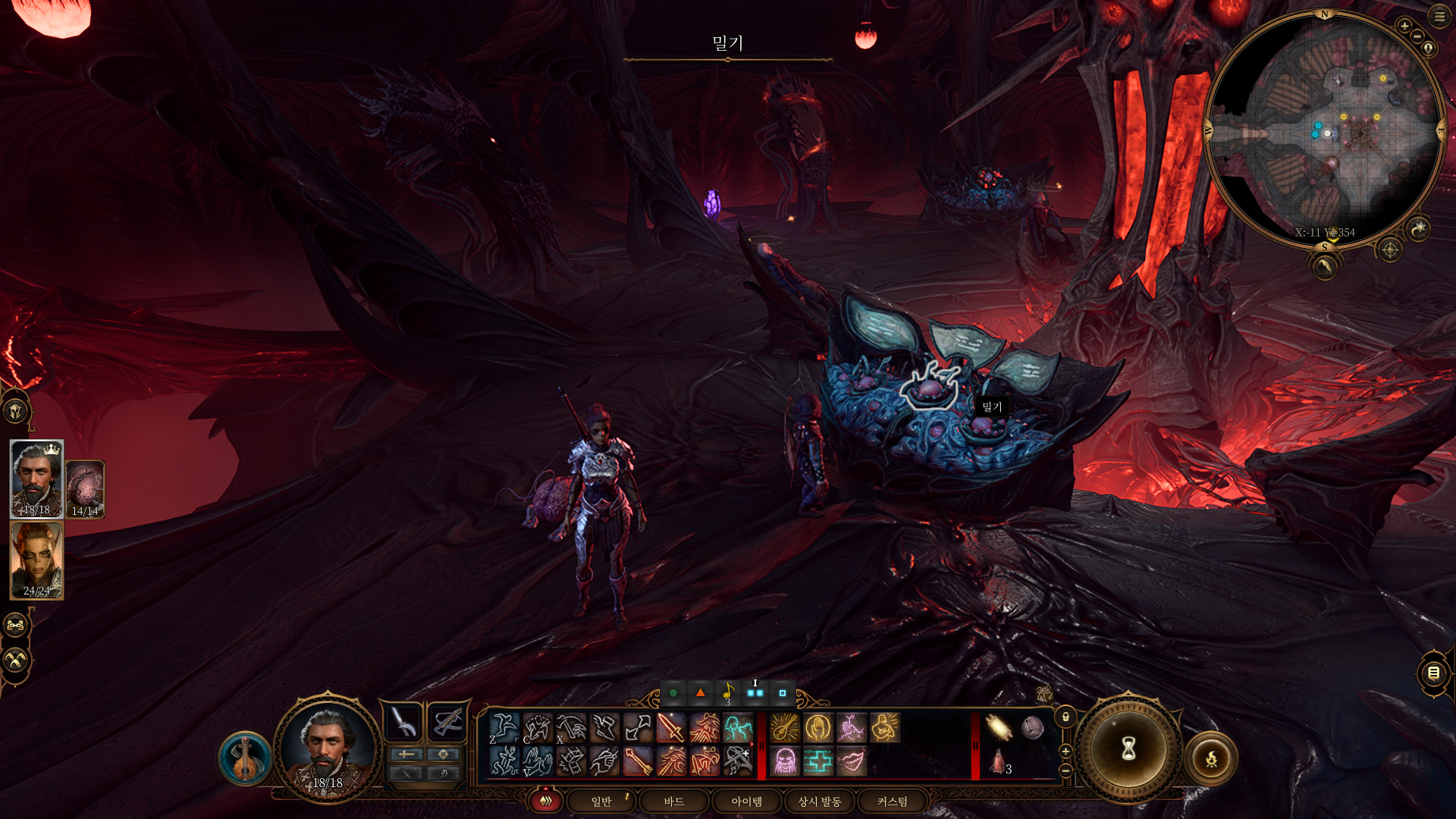 전체 지도(M)을 눌러보면 동료는 파란색 점으로 표시되고 초상화를 통해 제어할 수 있다. 캐릭터를 클릭하고 드래그 하면 그룹 지정 후 이동할 수 있고, G버튼을 눌러 해제할 수 있다.