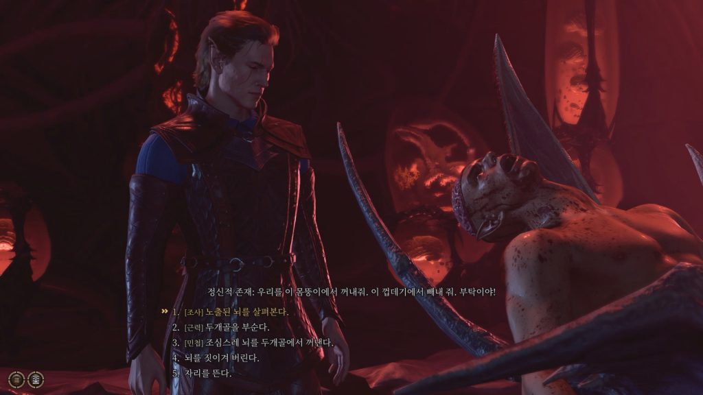 스스로를 '우리' 라고 부르는 지능 포식자와 대화를 끝낸 후 두개골을 부수거나 노출된 뇌를 살펴볼 수도 있다. 뇌를 망가뜨리거나 반대로 자유롭게 살려 줄 수 있다.