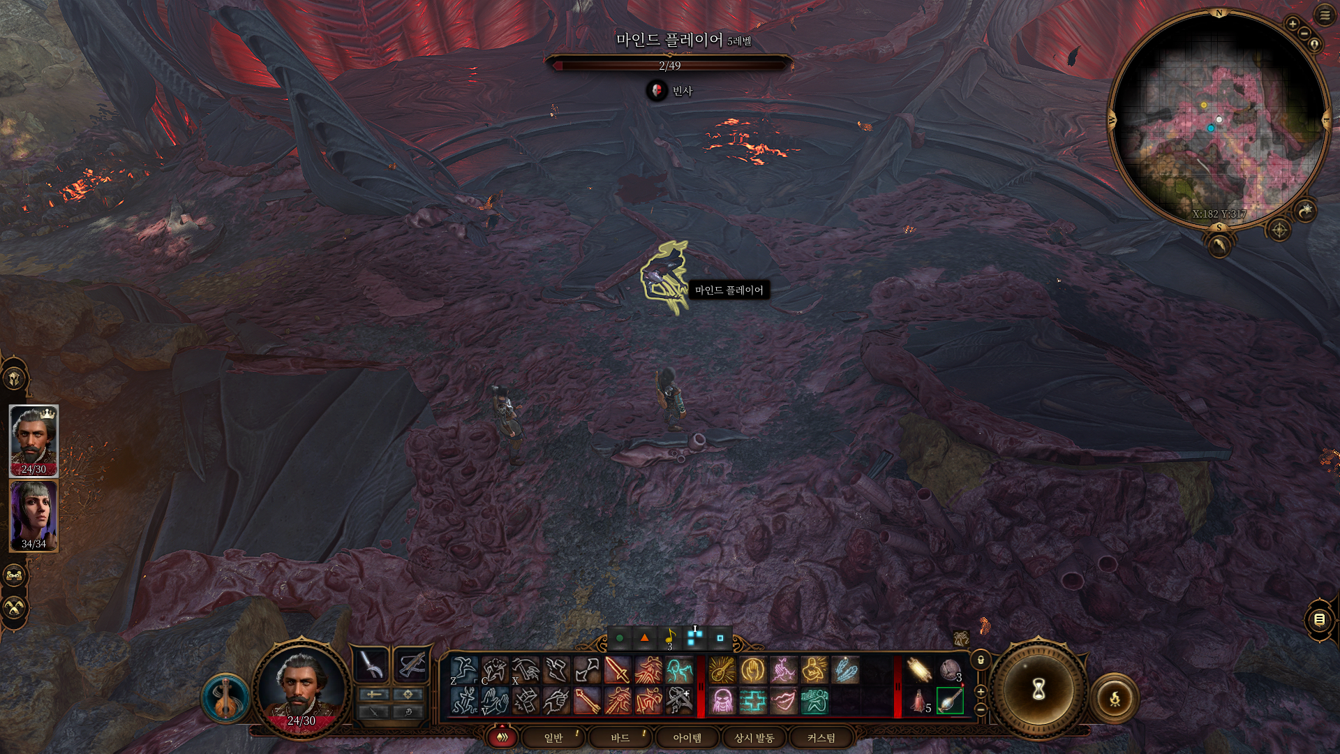 다시 내려와서 북서쪽으로 가보면 불이 땅을 뒤덮은 곳이 나오는데 밟게 되면 피해를 입을 수 있으니 주의 하자. 계속 진행하면 부상당한 마인드 플레이어가 빈사 상태에 빠져 있다.