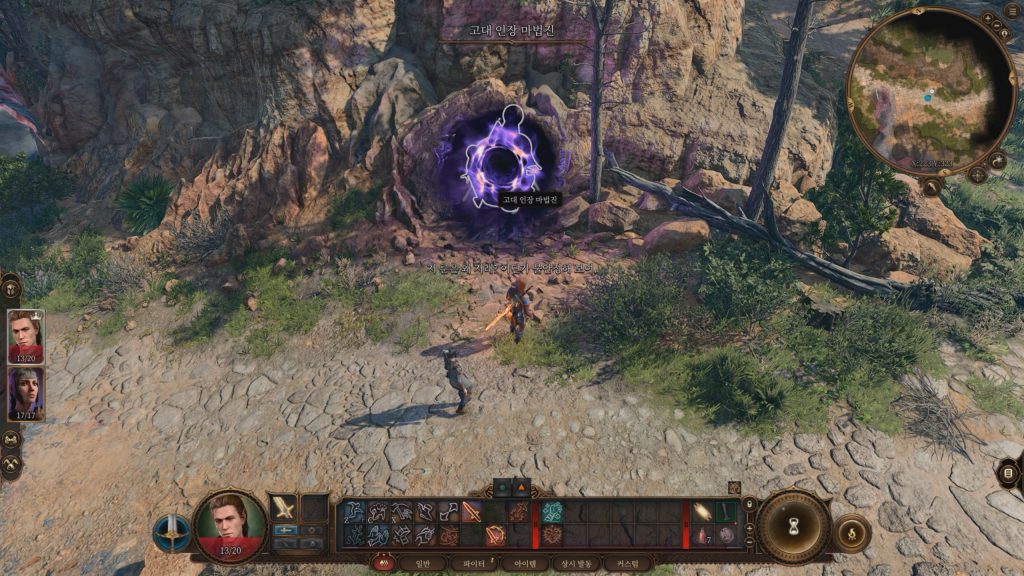 고대의 문 좌측 절벽에는 순간이동진이 있다. 발더스 게이트 3 월드에는 곳곳에 순간이동진이 존재한다. 순간이동진을 활성화시키면 빠른 이동이 가능하다.