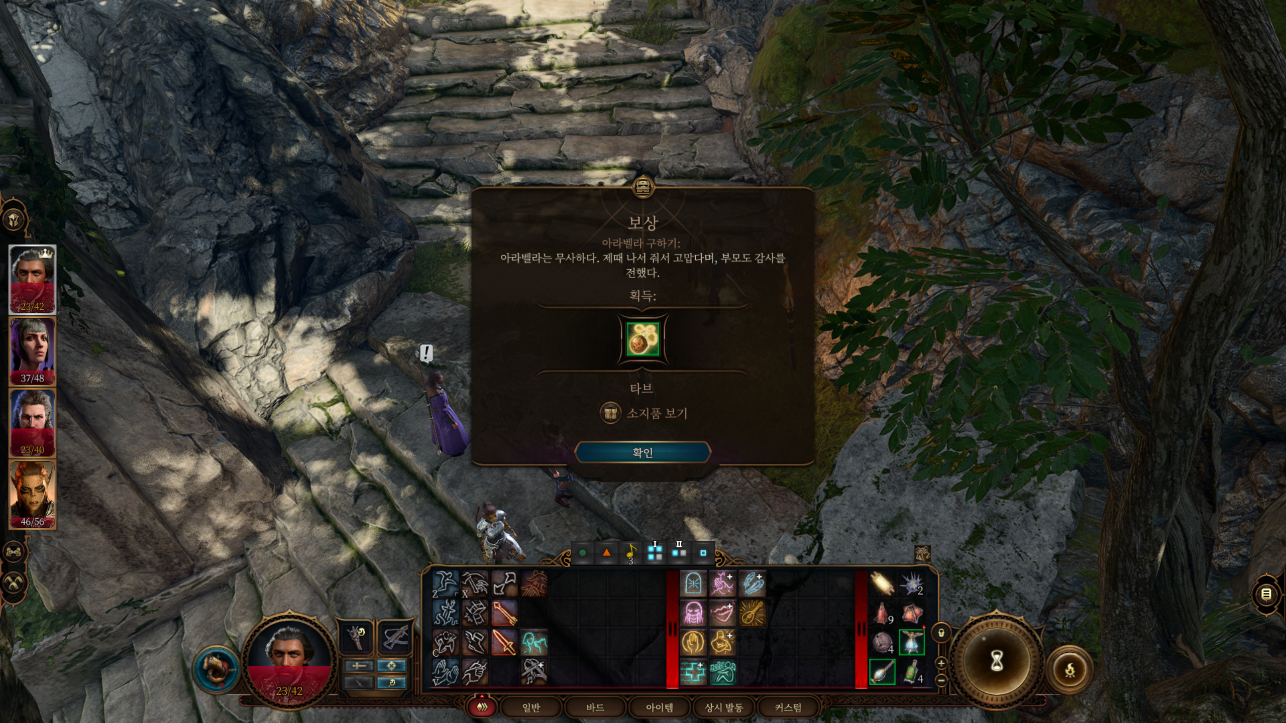 아라벨라 구하기는 드루이드 숲에서 진행할 수 있는 서브 퀘스트다. 드루이드 성소에서 아라벨라를 찾을 수 있는데 드루이드 지도자 코가에게 판결을 받고 있다.