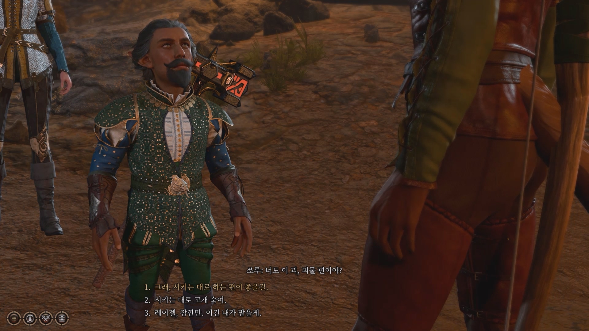 레이젤로 말을 걸면 편 가르기 하는 쏘루에게 레이젤 편을 들어주면 되는데 대화 선택 화면에서 섀도 하트는 호감도가 하기 때문에 멀리 이동시키자.