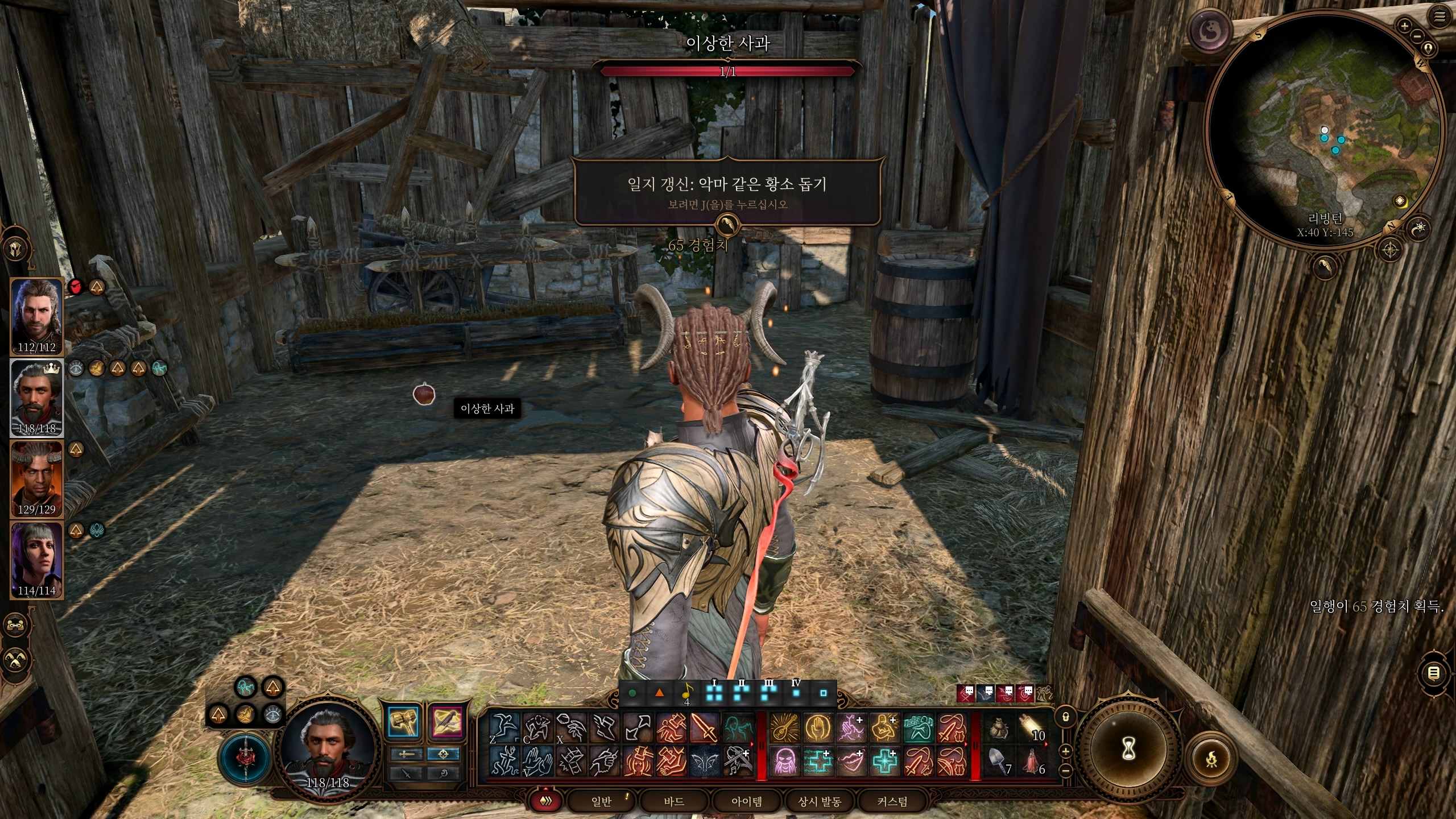 이 후 이상한 소는 이상한 사과로 변하고 악마 같은 황소 돕기 퀘스트를 시작할 수 있다. 소가 있던 자리 옆에 생존 판정 성공 시 흙무더기를 찾을 수 있다.