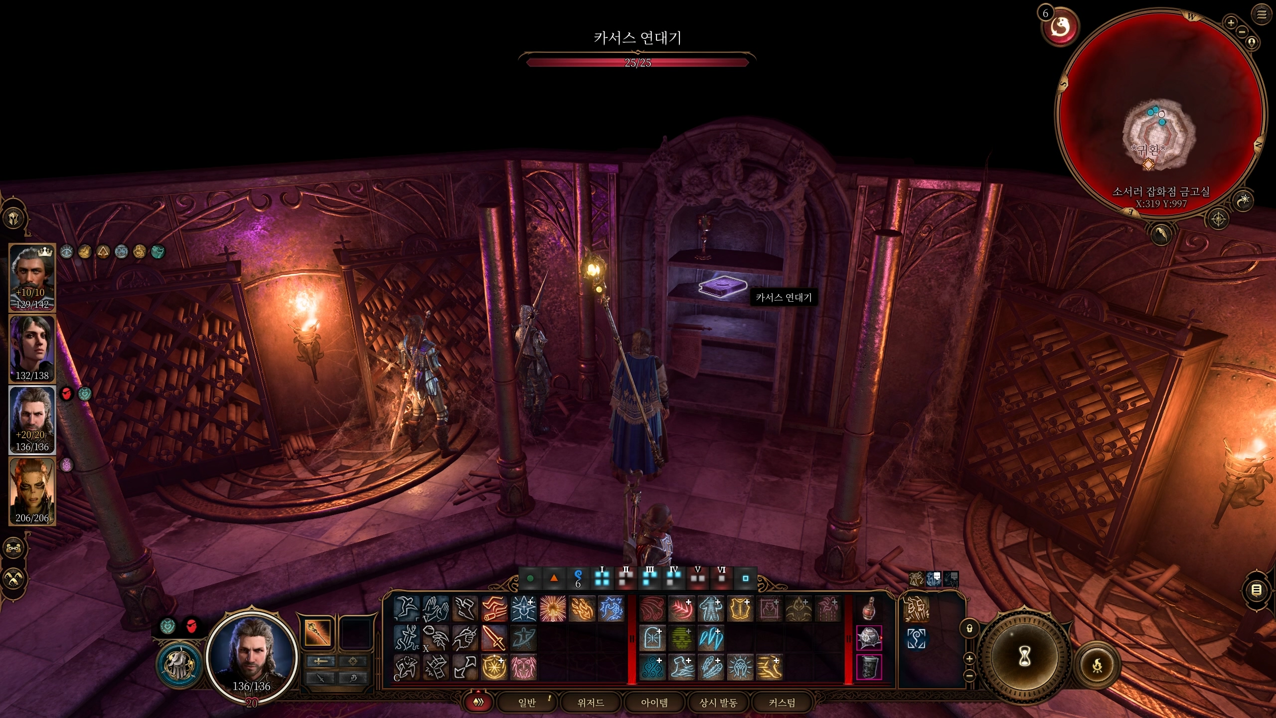 방 서쪽 책장에서 카서스 연대기를 읽을 수 있다. 읽고나면 보상으로 폐위 두루마리를 얻을 수 있다.