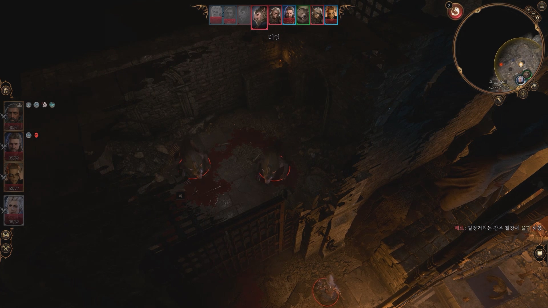 워그 우리로 들어가서 모든 고블린들을 처치하면 된다. 일단 전투가 시작되고 1 턴 정도가 지나면 짧은 컷신 후 곰이 문을 부수고 일행을 도와줄 것이다.