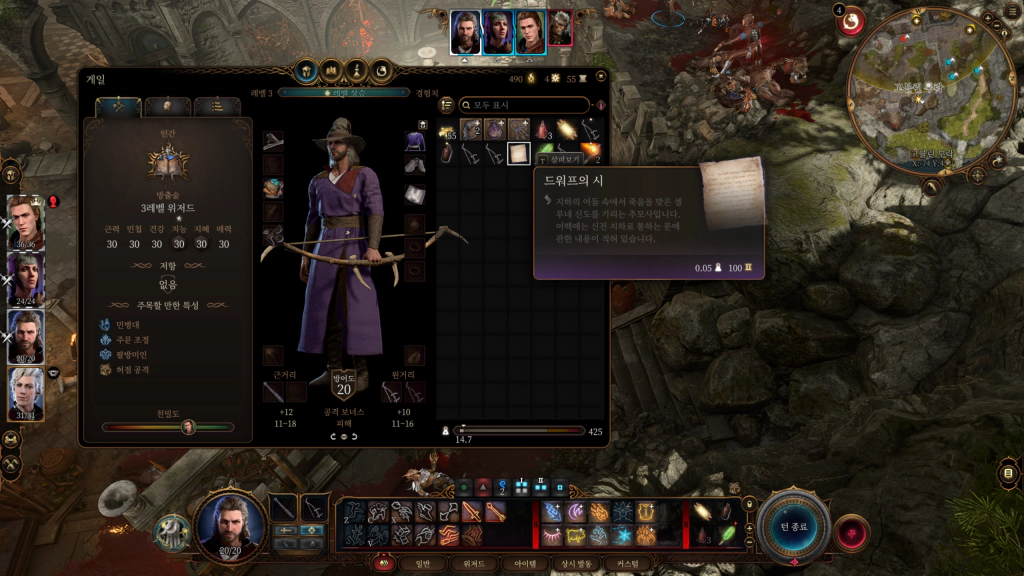 발더스 게이트에서 밤의 노래를 찾는 위저드 찾기