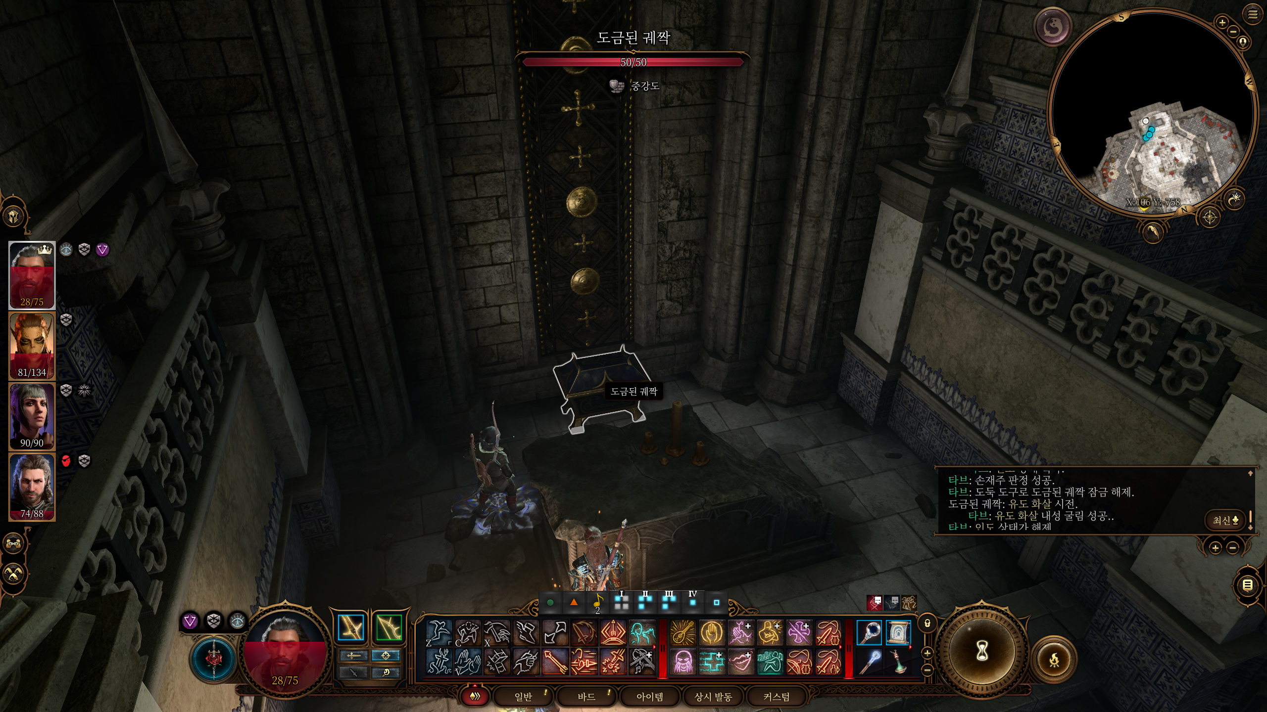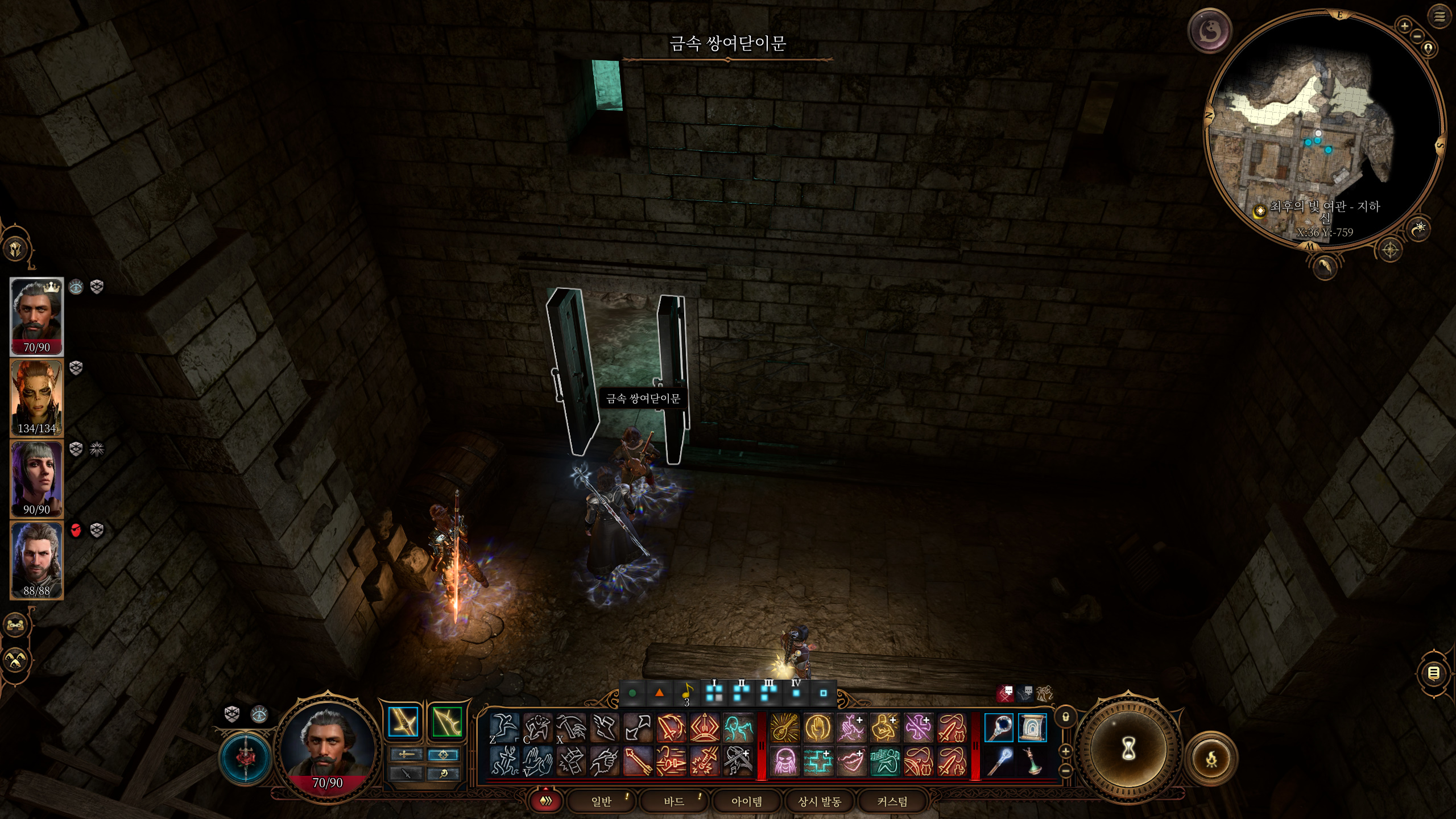 동쪽에 있는 계단 위로 올라가면 단추를 포착할 수 있고 열린 벽 (X:120 Y:-737)으로 들어가면 무거운 궤짝에서 물약과 두루마리를 얻을 수 있다.