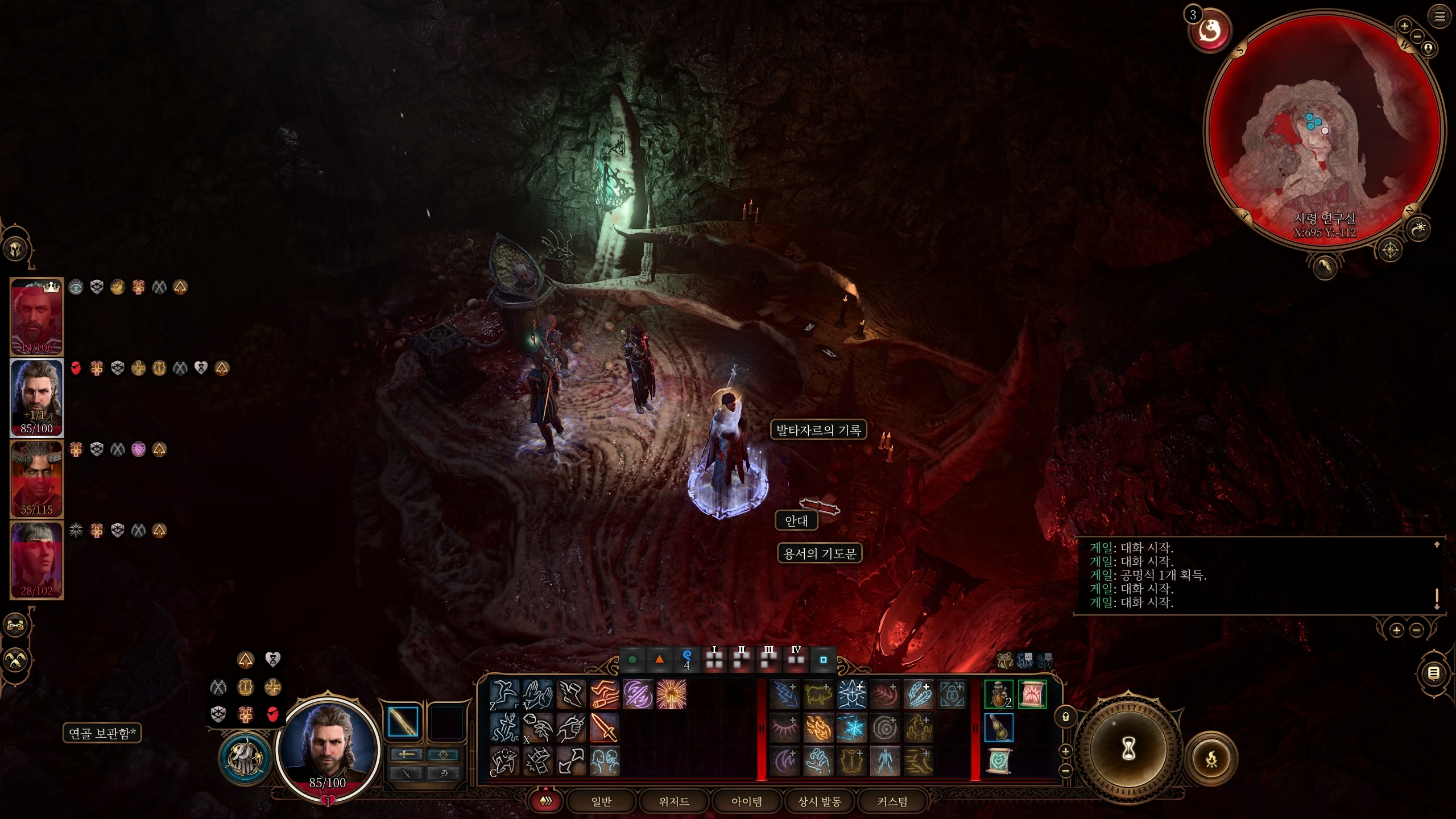 - 마인드 플레이어 군체의 올챙이 배양소를 살펴봤다. 하지마 몰의 흔적은 찾을 수 없었다. 몰이 저주받은 장소에서 탈출한 게 분명하다.