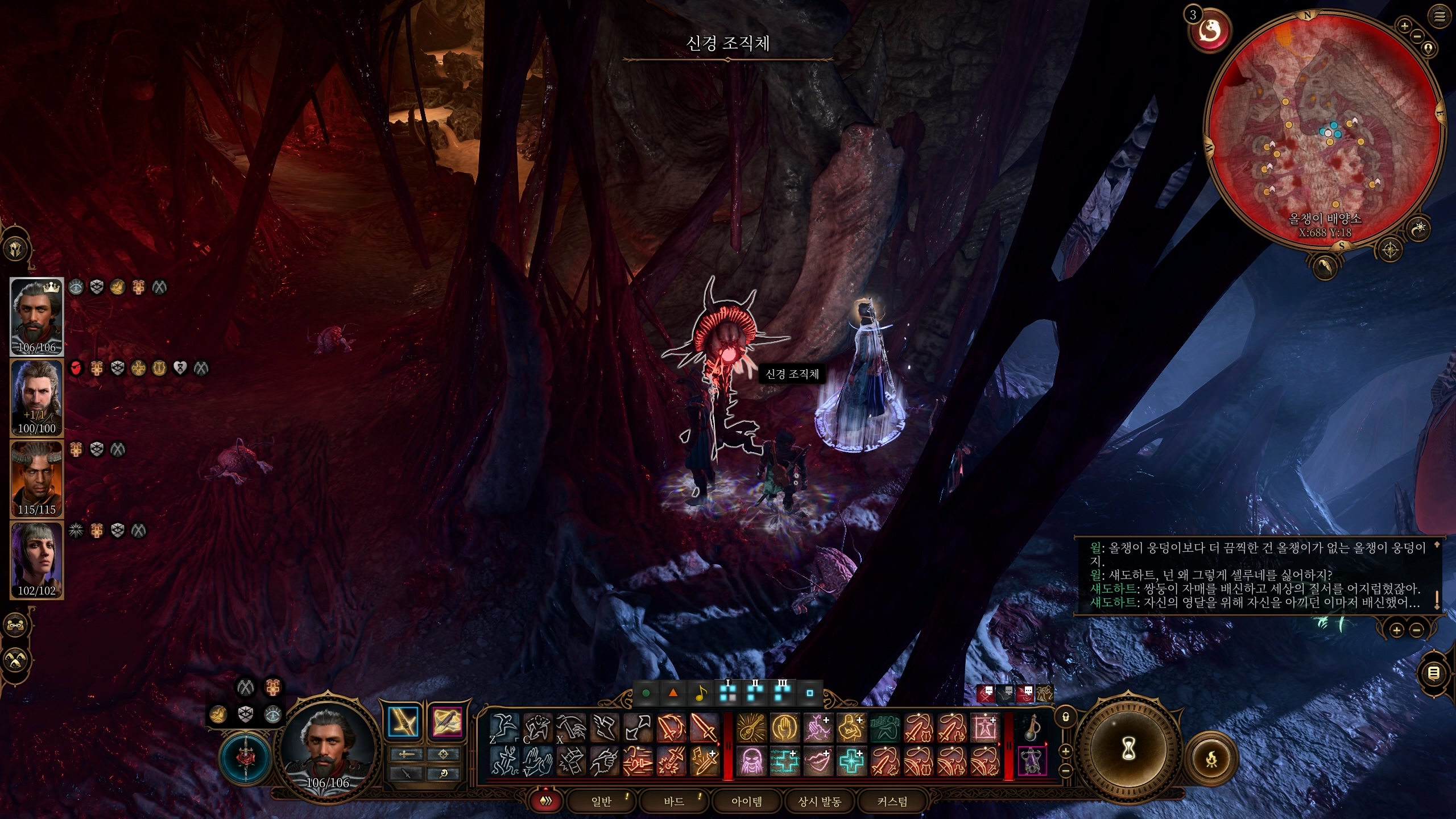 - 포획낭을 열어 마인드 플레이어를 숙주들을 풀어주었다. 이제 전투를 치러야 한다.