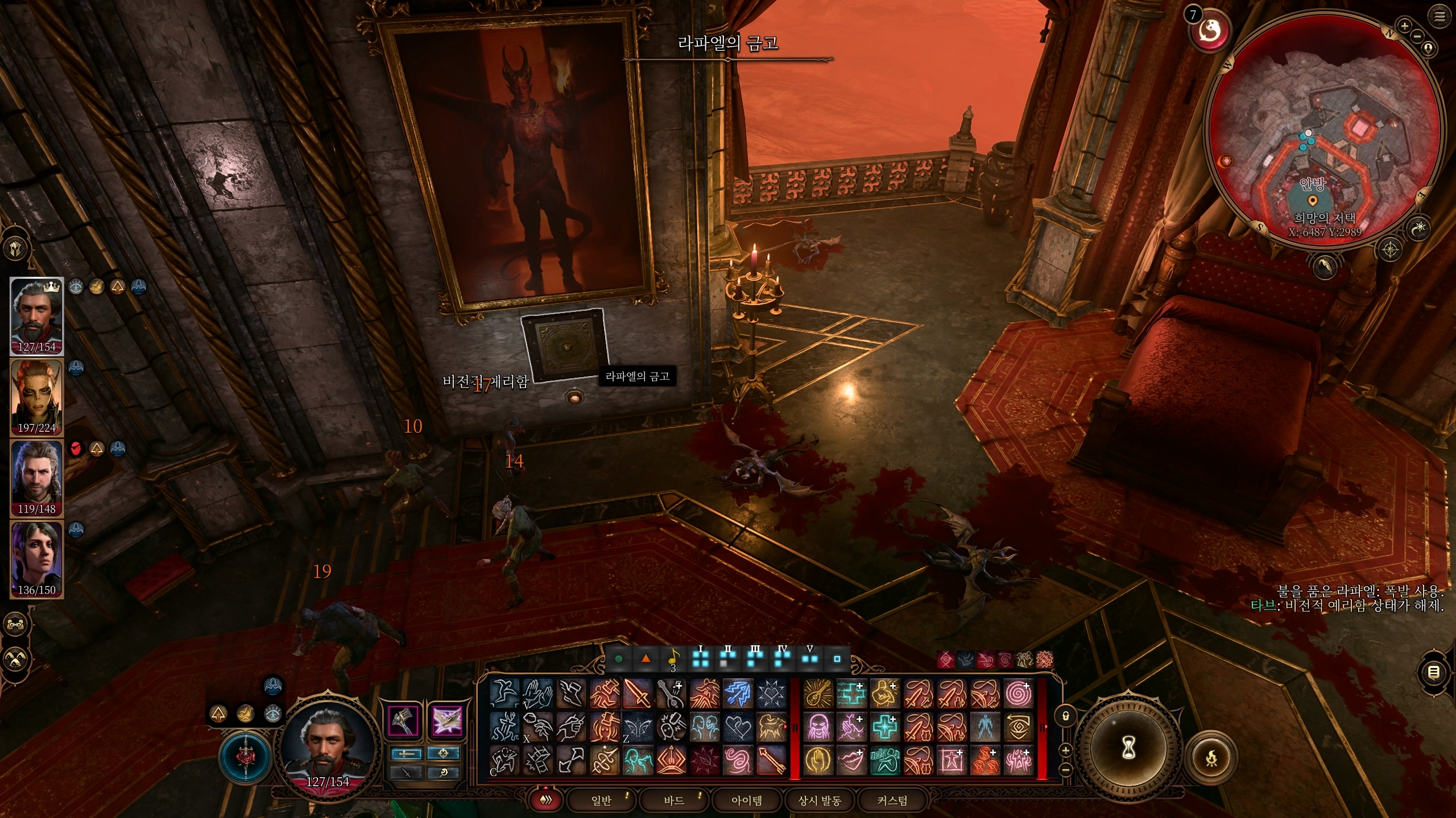 일단 라파엘이 영혼의 기둥 개수에 따른 영혼을 흡수하고 마족의 승천 주문이 끝나면 강력한 유린하는 불지옥 주문을 사용한다.