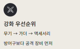 - 최우선 목표: 공격력 극대화 (무기, 가더, 액세서리 강화 및 데바니온 공격력 투자)를 최우선으로 합니다.
