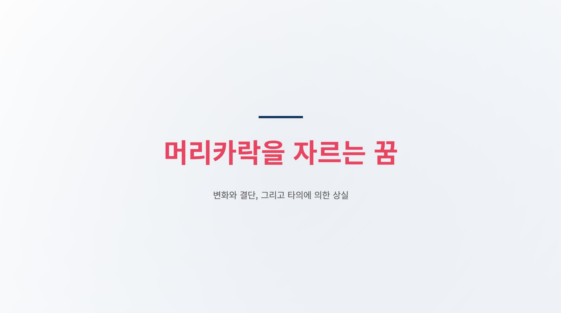 머리카락을 자르는 행위는 변화, 결단, 단절을 상징합니다. 누가 머리카락을 자르느냐에 따라 해몽의 방향이 완전히 달라집니다. 이는 미래를 예측하는 데 중요한 관점입니다.