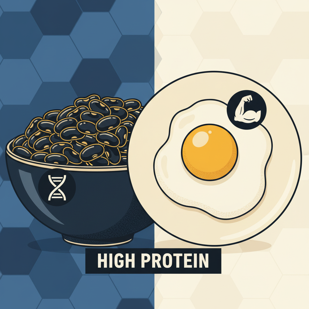 ① 검은콩과 달걀: 단백질과 비오틴 공급