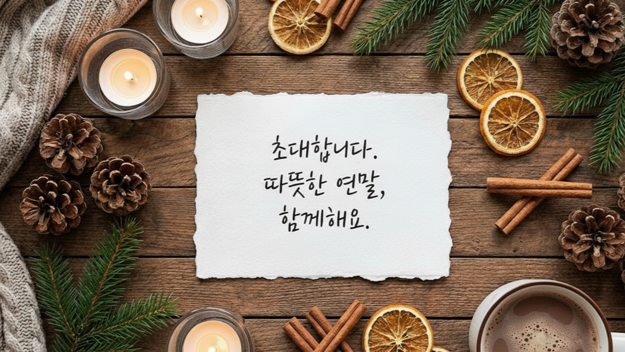 성공적인 송년회는 모이기 전부터 시작됩니다. 단톡방에 날짜와 장소만 공지하기보다는, 친구들의 마음을 움직이는 감성적인 초대장 문구를 보내보세요. 참석률이 달라집니다.