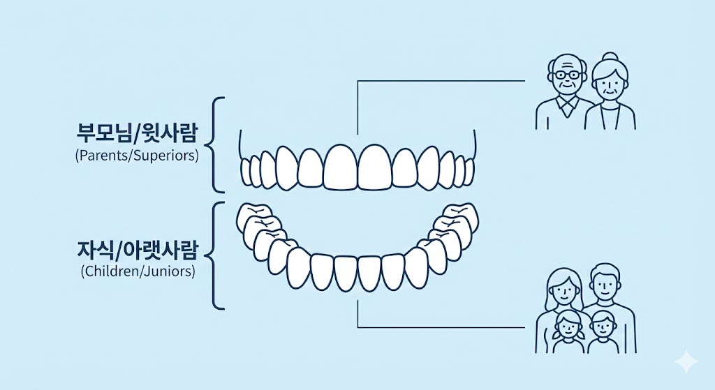 - 🔽 아랫니(하악): 아랫사람, 자녀, 후배, 부하 직원