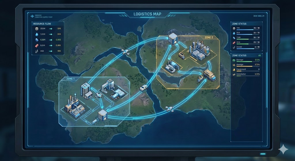 각 시설은 한 번에 단 하나의 제조 공식(Formula)만 가동할 수 있습니다. 아이템을 드래그하여 투입하면 자동 처리가 시작되며, 상세 정보 창에서 시설의 이동, 회전, 포트 방향 조정을 통해 물류 병목을 해결할 수 있습니다. 단, 운송 벨트는 이 방식으로 이동할 수 없으니 동선 설계에 주의하세요.
