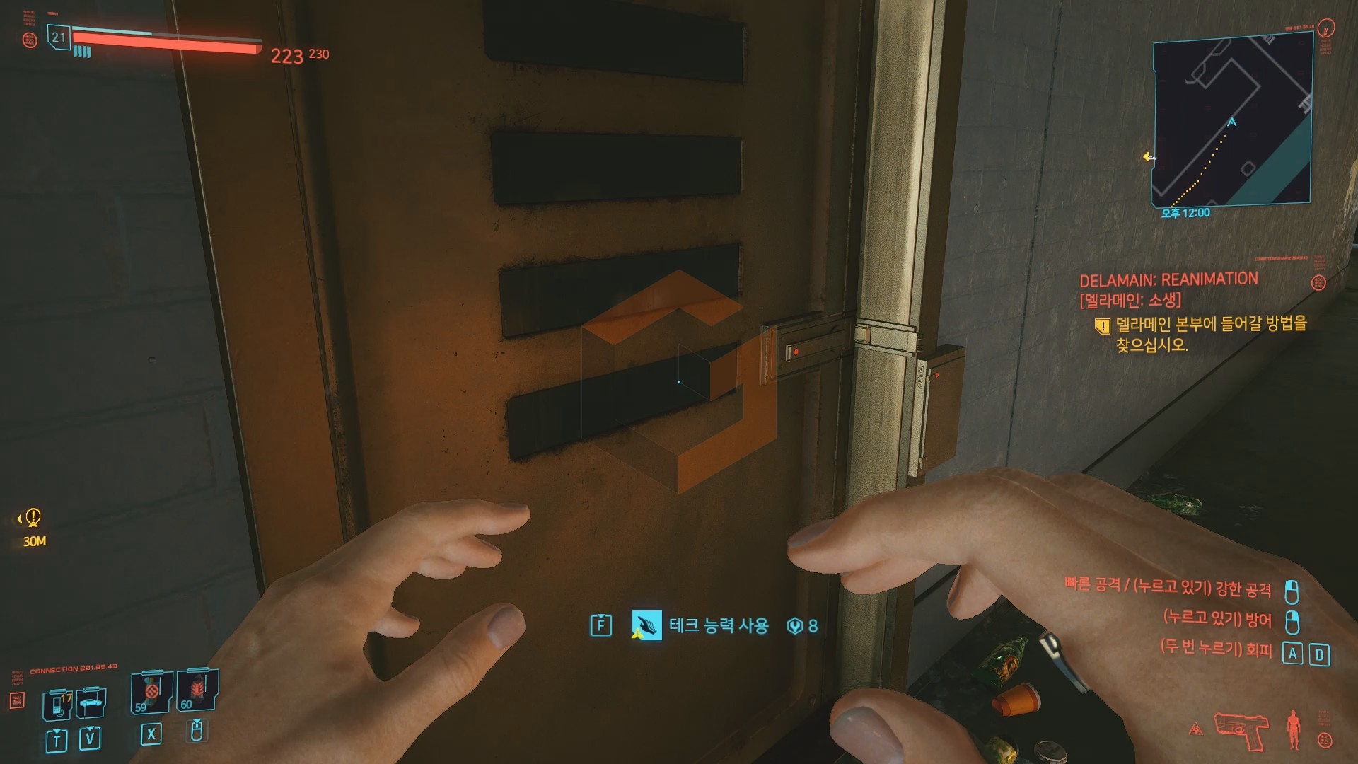 일단 밖으로 나와서 건물 좌측으로 가보면 테크 능력을 사용해서 들어갈 수 있는 문이 있는데 레벨이 낮아서 들어갈 수 없다면 문을 지나서 건물 위로 올라갈 수 있는 길이 있다.