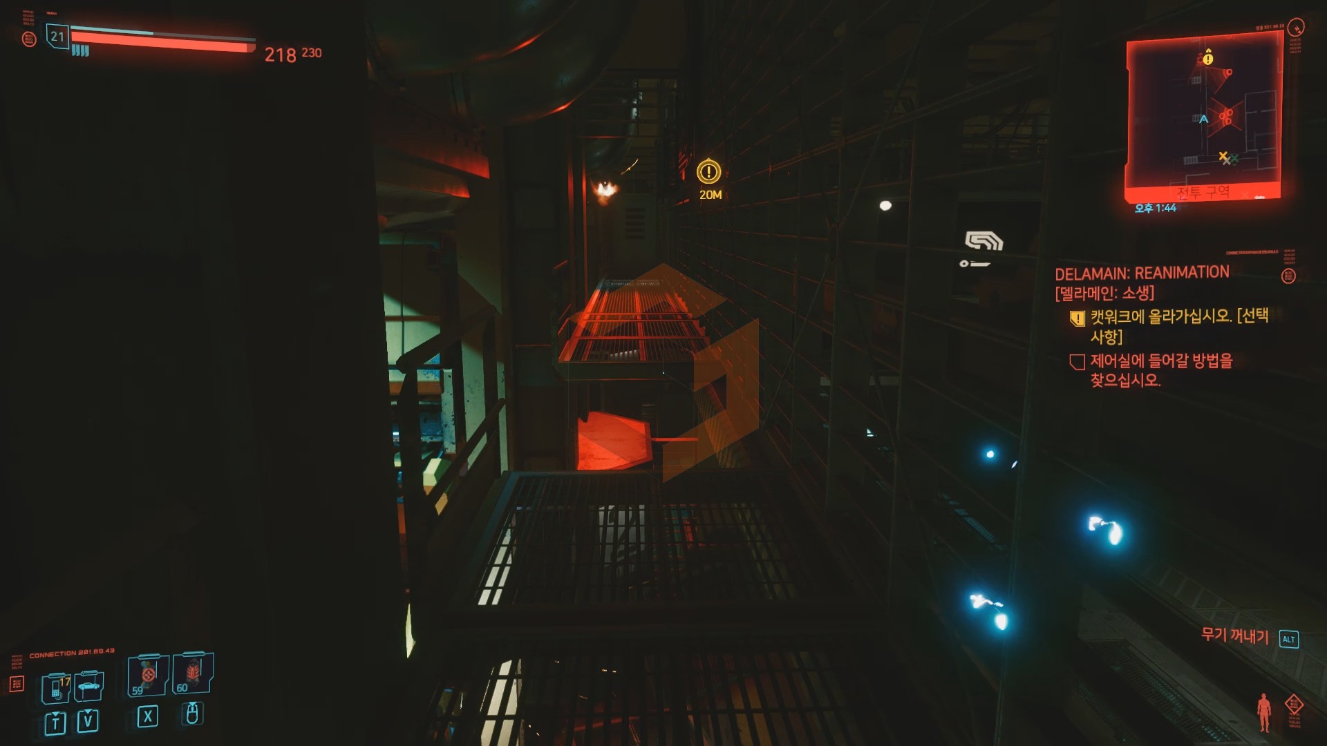 계단을 올라가서 드론들을 제거하고 통로 따라가면 EXIT로 표시된 문을 발견할 수 있고 사다리를 타고 아래층으로 내려올 수 있다.