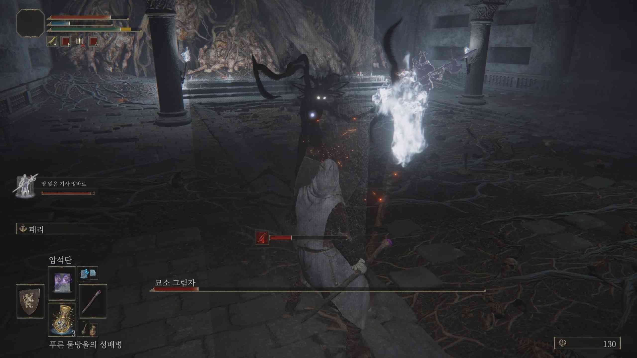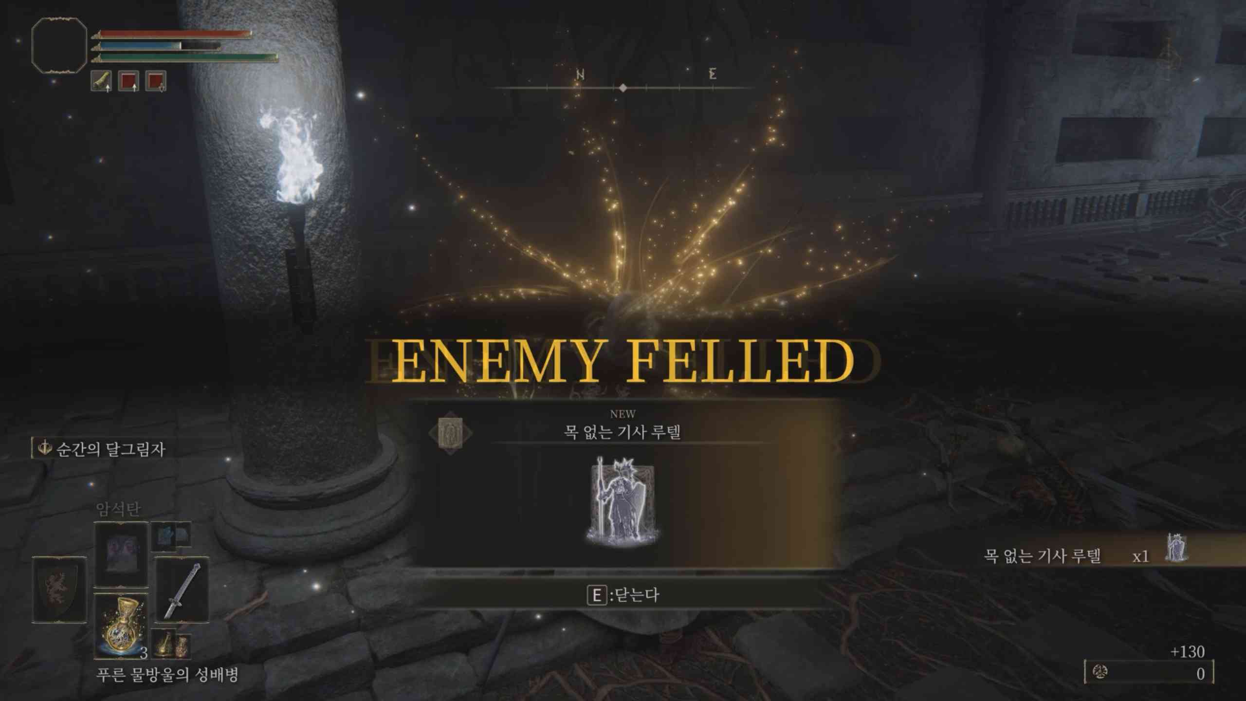 묘소 그림자를 처치하면 2,200룬과 전리품으로 『목 없는 기사 루델』을 얻을 수 있다.