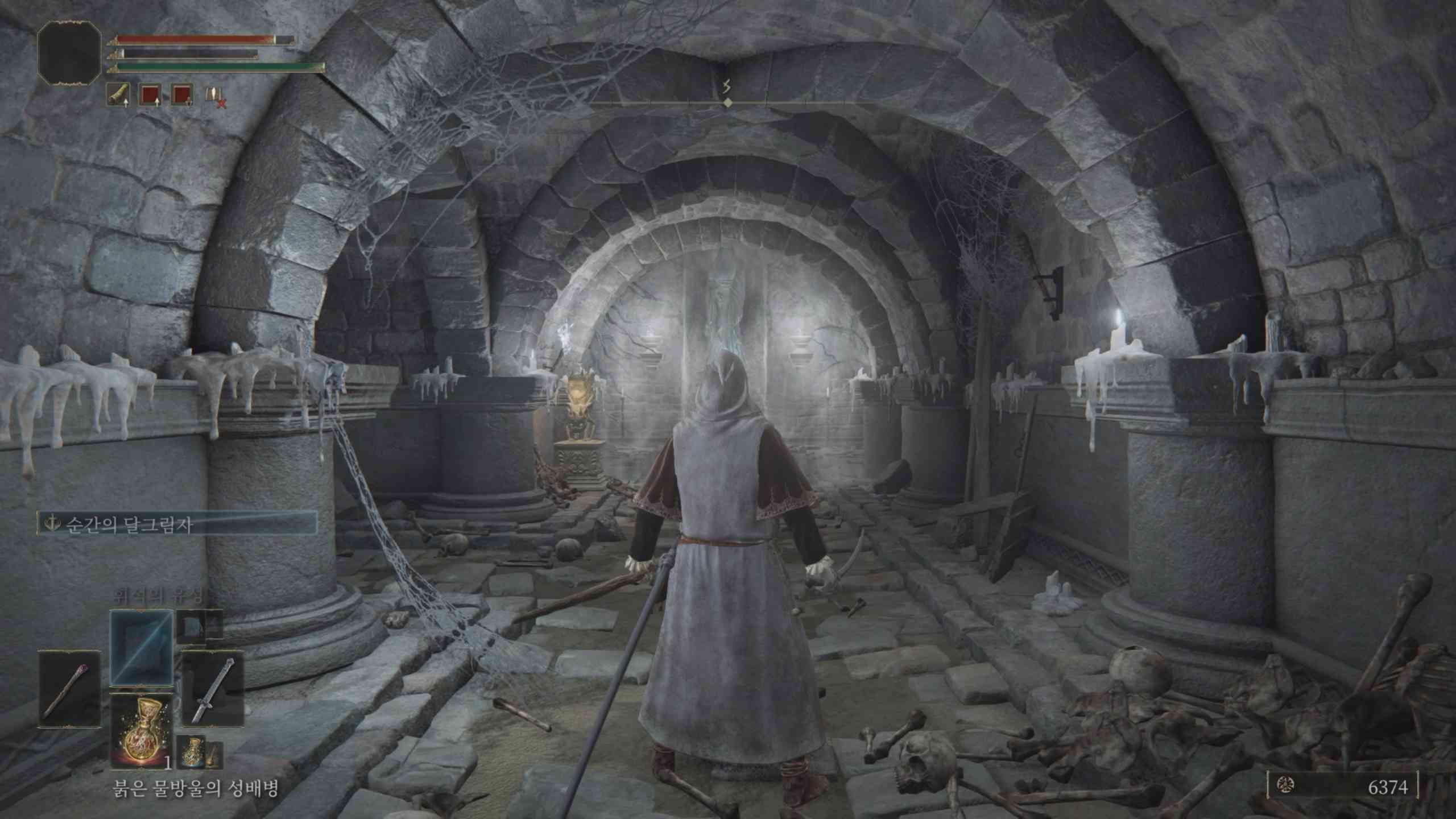 왼쪽 계단 아래로 내려가면 지하 묘지 좀 더 깊숙한 곳에 도달하게 된다. 검을 쓰거나 활을 쓰고 화염병을 투척하는 해골들이 많이 있는데 계속 부활하기 때문에 상당히 귀찮다.
