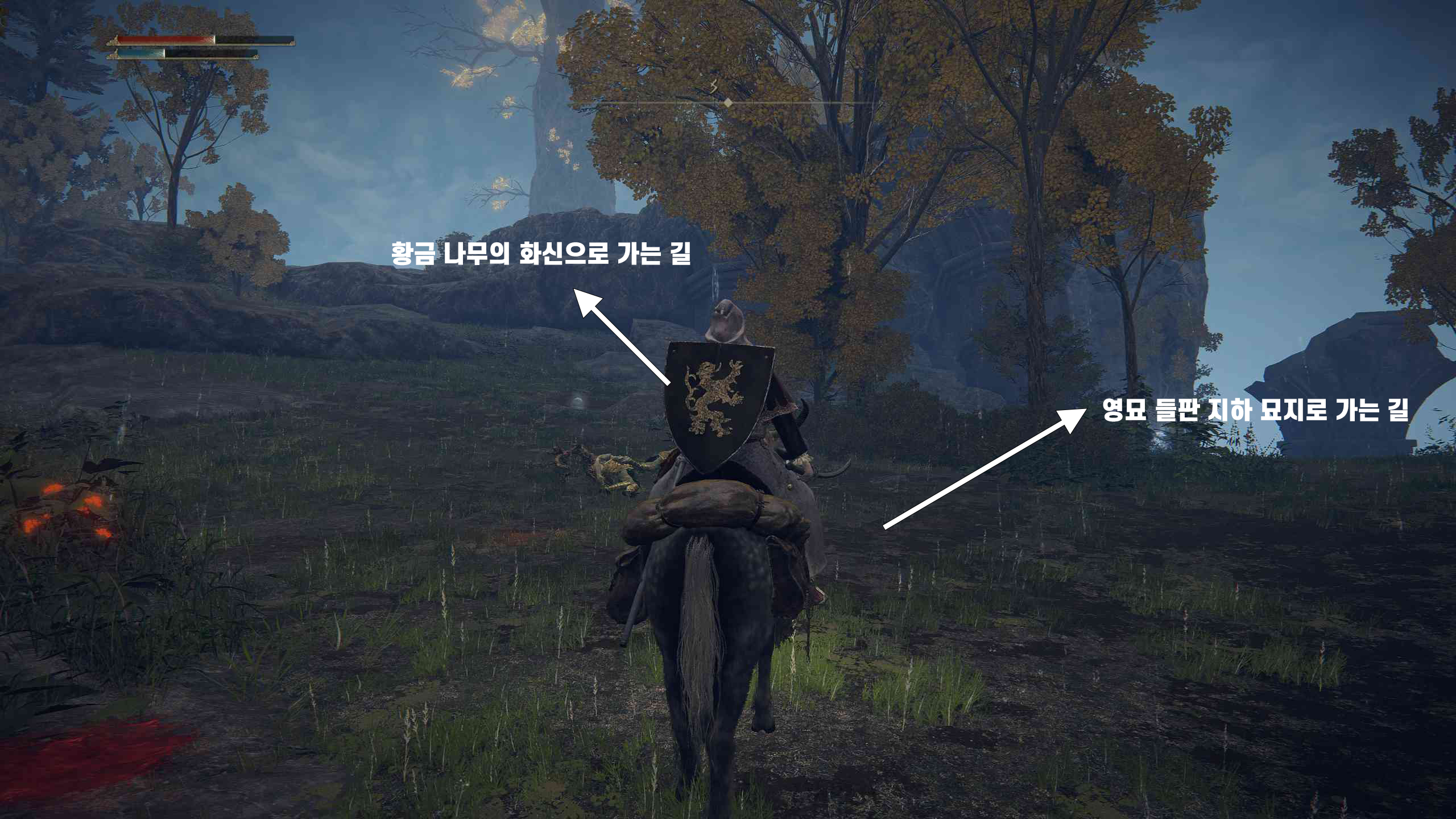 왼쪽 언덕길로 올라가면 황금 나무의 화신을 만날 수 있다.